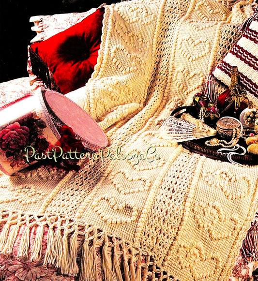 Vintage Crochet Pattern Victorian Hearts Paneled Afghan PDF Instant Digital Download Bobble Puff & Tunisian Stitch 10 Ply