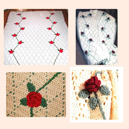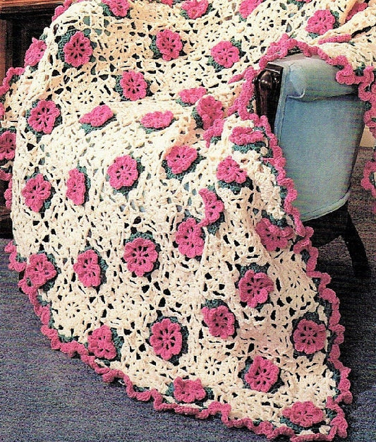 Vintage Crochet Pattern Victorian Reaching Roses Eyelet Diamonds Afghan PDF Instant Digital Download Floral Rose Blanket Throw 10 Ply