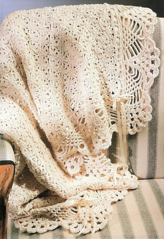 Vintage Crochet Pattern Victorian Lace Afghan Throw PDF Instant Digital Download Heirloom Christening Lapghan Ecru White 46x58