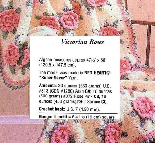 Vintage Crochet Pattern Victorian Rose Squares Afghan PDF Instant Digital Download Petal Flowers Blanket 4 Ply Worsted 52x68"