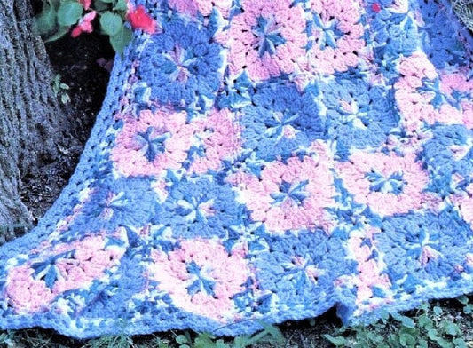 Vintage Crochet Pattern Watercolor Flower Garden Afghan PDF Instant Digital Download Lacy Floral Motif Granny Square Blanket 48x68 10 Ply