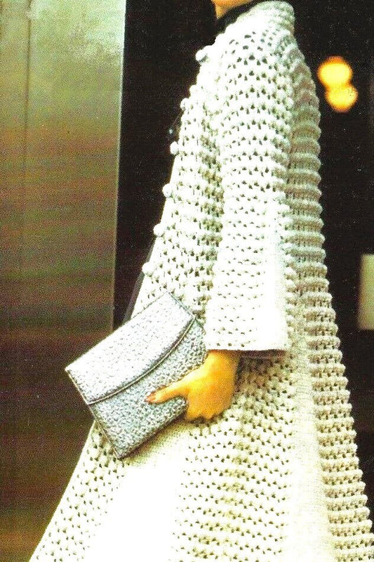 Vintage Crochet Pattern Womens Flared Dressy Maxi Evening Coat or Dressing Robe PDF Instant Digital Download Formal Wedding Godet Panels DK
