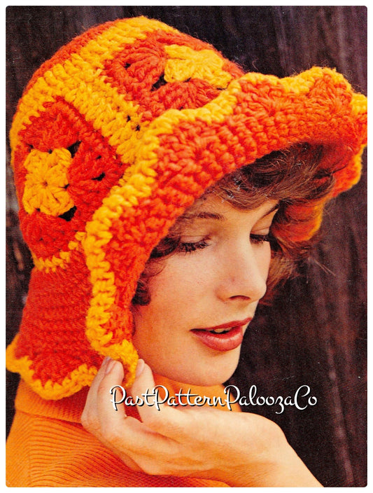 Vintage Crochet Pattern Womens Floppy Summer Bucket Hat Granny Square Chic PDF Instant Digital Download Brimmed Beachy Sun Hat