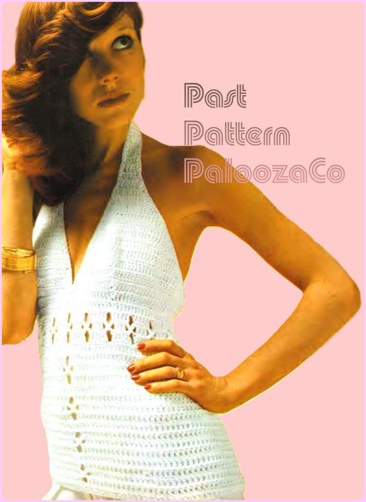 Vintage Crochet Pattern Womens Halter Neck Top PDF Instant Digital Download Retro 70s Boho Cotton Camisole Backless Summer Tank Fitted Bust