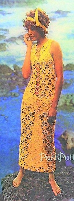 Vintage Crochet Pattern Womens Lace Maxi Dress Beach Bikini Cover Up PDF Instant Digital Download Retro Boho Hippie Chic 4 Ply