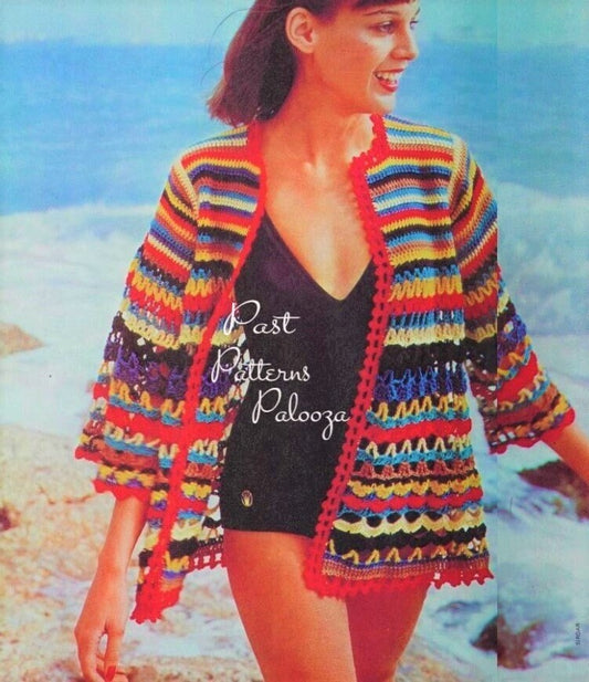 Vintage Crochet Pattern Womens Jazzy Beach Wrap Cover Up PDF Instant Digital Download Retro Swimsuit Cardi Jacket Top DK