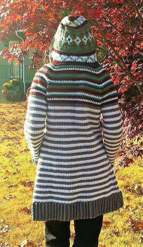 Vintage Crochet Pattern Womens Hooded Sweater Coat & Mittens Set PDF Instant Digital Download Retro Boho 1970s Chunky 12 Ply