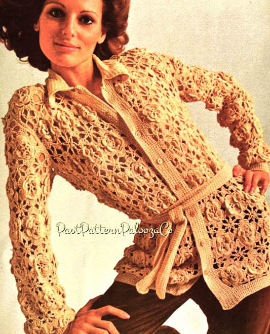 Vintage Crochet Pattern Womens Lace Overblouse Cardigan Top Stars Flowers Motif PDF Instant Digital Download Retro Boho Chic