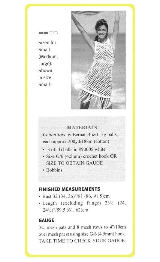 Vintage Crochet Pattern Womens Mesh Lace Beach Dress Cover Up Tasseled Tunic PDF Instant Digital Download Retro Boho Summer Swimsuit Top
