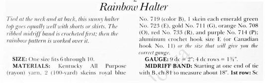 Vintage Crochet Pattern Womens Rainbow Halter Midriff Top PDF Instant Digital Download Retro Summer Hippie Boho Wear 1970s DK 8 Ply