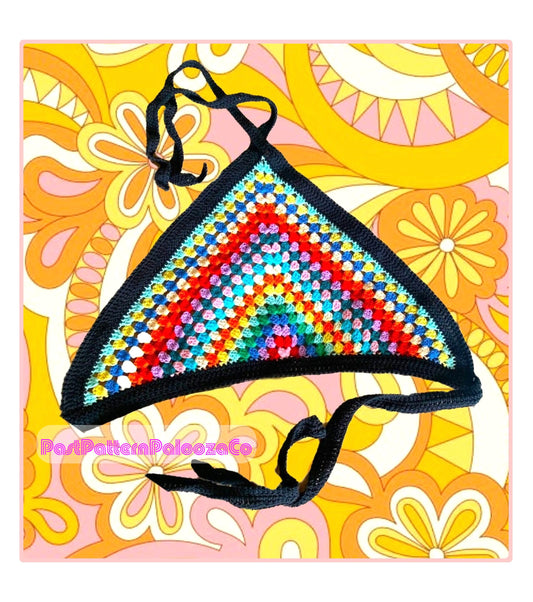 Vintage Crochet Pattern Womens Retro Triangle Halter Neck Top PDF Instant Digital Download Hippie Disco Festival Groovy Boho Summer Rainbow
