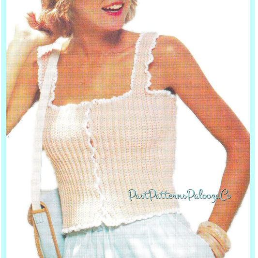 Vintage Crochet Pattern Womens Ribbed Camisole Vest Summer Tank Top Ruffled Edging PDF Instant Digital Download Pretty Cropped Cami 10 Ply