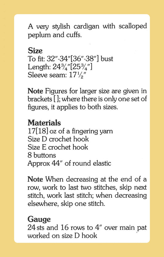 Vintage Crochet Pattern Womens Scalloped Peplum Cardigan Sweater Blouse Top PDF Instant Digital Download Romantic Feminine Cardi 4 Ply