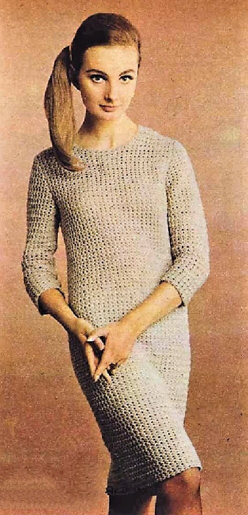 Vintage Crochet Pattern Womens Simple Classic Shapely Shift Dress PDF Instant Digital Download DK 8 Ply