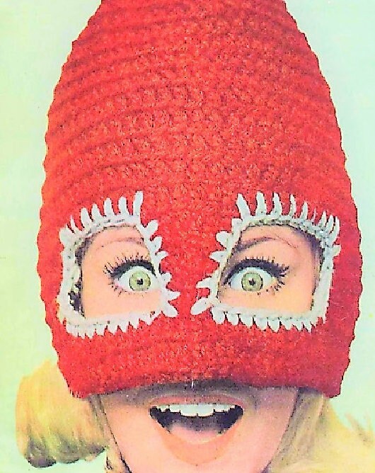Vintage Crochet Pattern Womens Ski Mask Mad Cap Hat PDF Instant Digital Download Retro Crazy Fun Mod Novelty Winter Mask 1960s 5 Ply