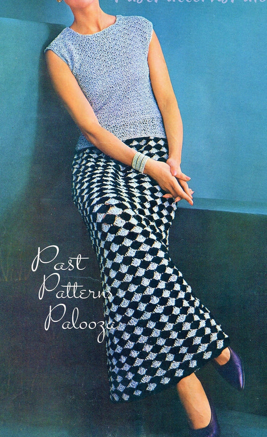 Vintage Crochet Pattern Womens Shell Stitch Maxi Skirt & Evening Top Set PDF Instant Digital Download 5 Ply or 10 Ply Metallic Yarn