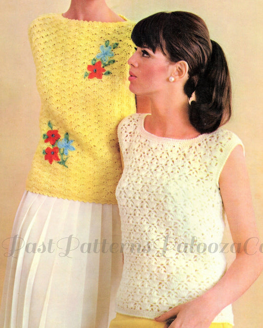 Vintage Crochet Pattern Womens Sleeveless Lacy Tops Shell Stitch Blouses PDF Instant Digital Download 5 Ply