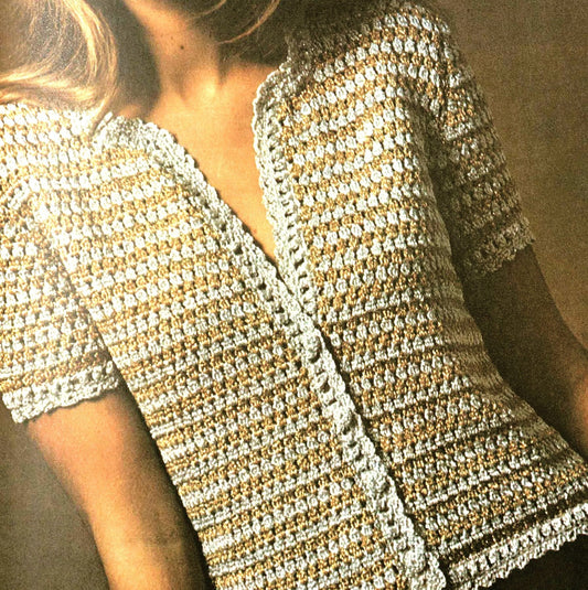 Vintage Crochet Pattern Womens Short Sleeved Cardi Top PDF Instant Digital Download Retro Dressy Lacy Summer Cardigan Jacket 1970s 4 Ply