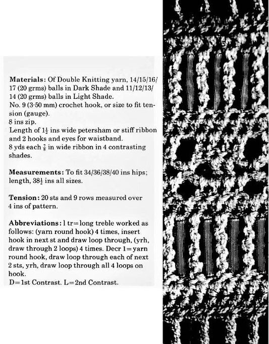 Vintage Crochet Pattern Womens Striped Maxi Skirt PDF Instant Digital Download Boho Gypsy Hippie Chic DK 8 Ply