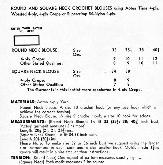 Vintage Crochet Pattern Womens Sleeveless Tank Blouse Tops Flower Motif Squares & Shell Stitch PDF Instant Digital Download 4 Ply