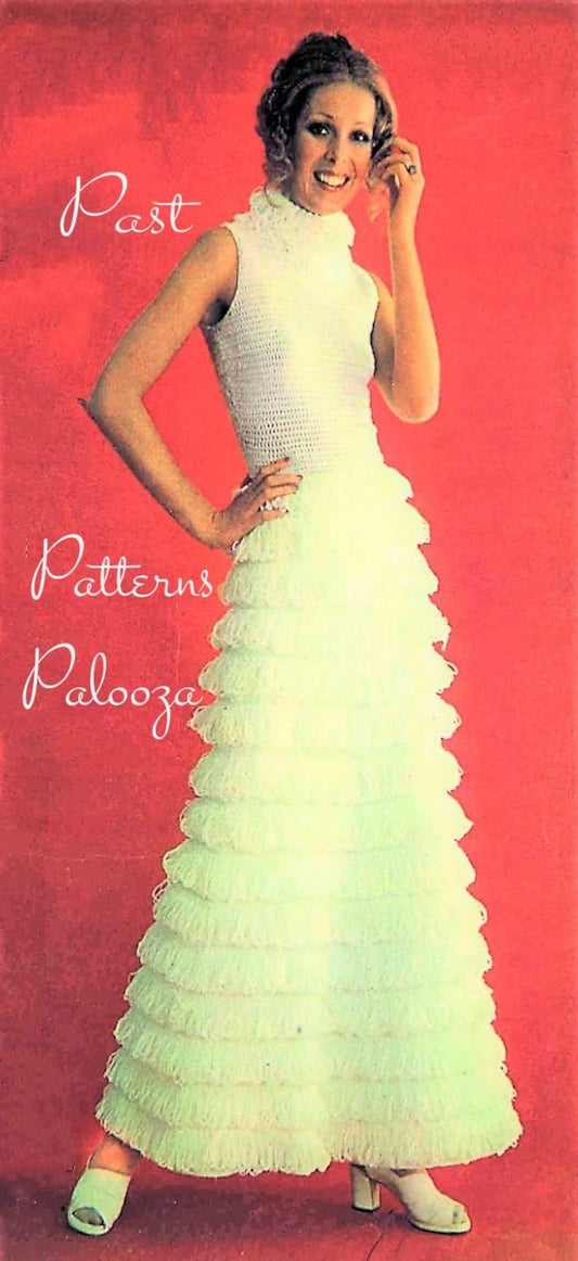 Vintage Crochet Pattern Womens Sleeveless Maxi Dress Loop Fringe Skirt PDF Instant Digital Download Long Party Summer Wedding Gown DK