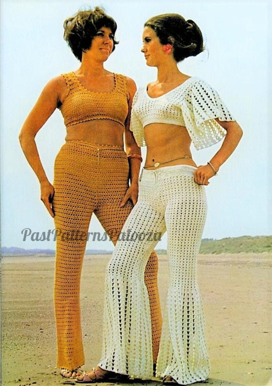 Vintage Crochet Pattern Womens Trouser Beach Suit Set Midi Top Beachwear PDF Instant Digital Download 70s Boho Hippie Bohemian 4 Ply 8 Ply