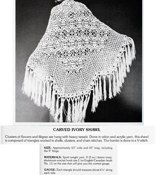 Vintage Crochet Pattern Womens Victorian Lace Carved Ivory Shawl PDF Instant Digital Download Boho Filigree Flower Tasseled Wrap 5 Ply