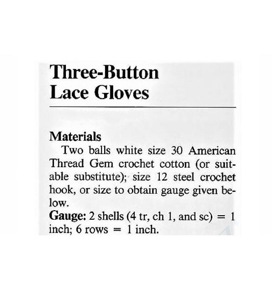 Vintage Crochet Pattern Womens Victorian Lace Three-Button Gloves PDF Instant Digital Download Shell Stitch Lacy Cotton Thread