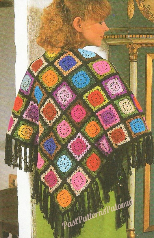 Vintage Crochet Pattern Womens Wagon Wheel Granny Square Shawl PDF Instant Digital Download Boho Gypsy Hippie Chic 5 Ply Scrap Yarn