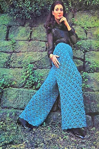 Vintage Crochet Pattern Womens Wide Leg Lace Pants PDF Instant Digital Download Boho Hippie Festival Chic Lacy Slacks 10 Ply