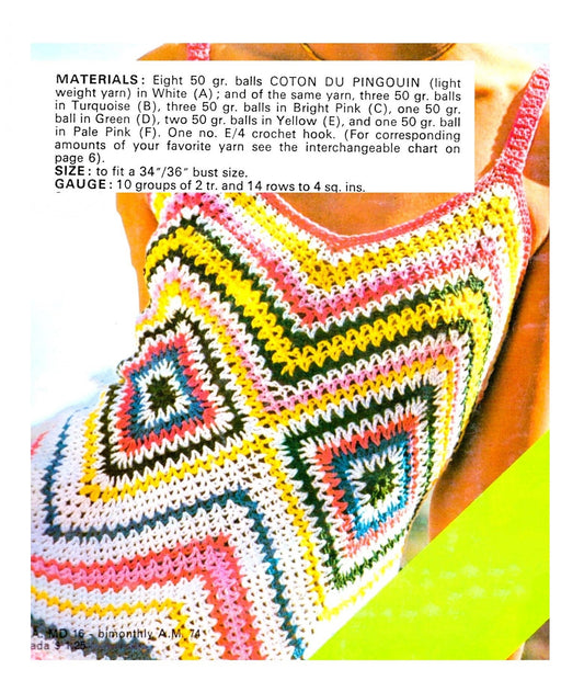 Vintage Crochet Pattern Womens Zig Zag Stripes Chevron Maxi Dress PDF Instant Digital Download Boho Granny Square Long Sundress