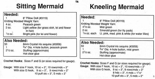 Vintage Crochet Patterns 13" Sea Mist Mermaids Bed Dolls Tail Hawaiian Outfits Standing or Pillow Doll PDF Instant Digital Download 10 Ply