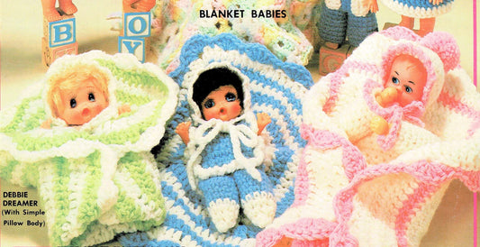 Vintage Crochet Patterns 10" Baby in a Blanket Dolls and Clothes for 7" Dolls PDF Instant Digital Download Retro Blanket Baby Dolls