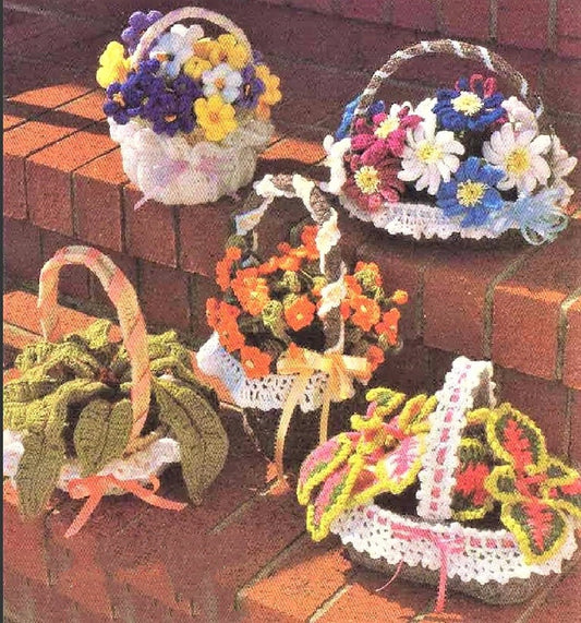 Vintage Crochet Patterns Fancy Flower and Plant Baskets PDF Instant Digital Download Realistic Floral Basket Amigurumi 5 Designs 10 Ply