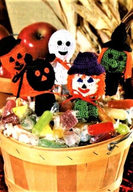 Vintage Crochet Patterns Halloween Party Decor and Favors PDF Instant Download Lollipop Covers Pumpkin Candy Dish Small Baskets Table Decor