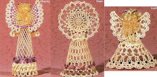 Vintage Crochet Patterns Ecru Cotton Thread Lace Christmas Angel Ornaments Ribbons n Roses PDF Instant Digital Download Centerpiece Decor