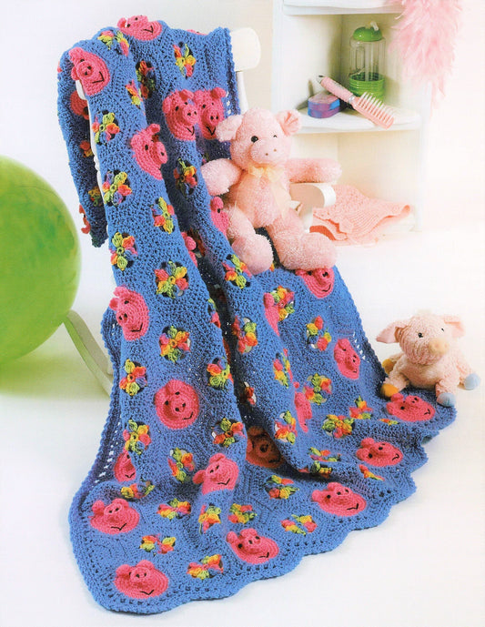 Vintage Crochet Pig Afghan Pattern PDF Instant Digital Download Granny Square Piggy Floral Motifs Animal Afghan 10 Ply