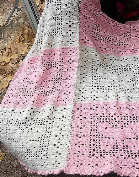 Vintage Filet Crochet Pattern Dancing Ducks Baby Blanket Afghan PDF Instant Digital Download Cot Pram Cover Lap Blanket 8 Ply 36x44