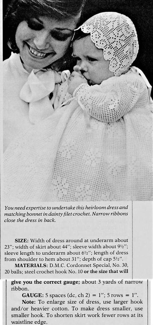 Vintage Filet Crochet Pattern Baby Christening Gown Bonnet Set Lacy Floral Heirloom PDF Instant Digital Download 0-6m