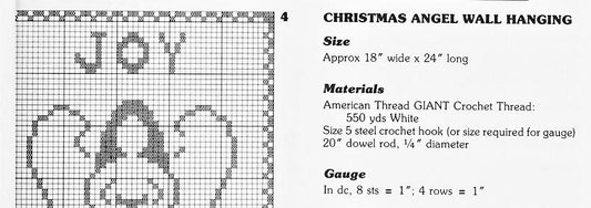 Vintage Filet Crochet Pattern Christmas Joy Angel Panel or Wall Hanging PDF Instant Digital Download Heirloom Holiday Project 18x24"