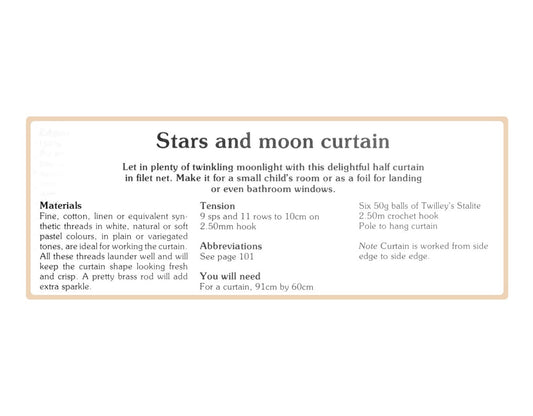 Vintage Filet Crochet Pattern Lace Stars and Moon Window Valance Panel Cafe Curtain PDF Instant Digital Download Starry Celestial Night Sky