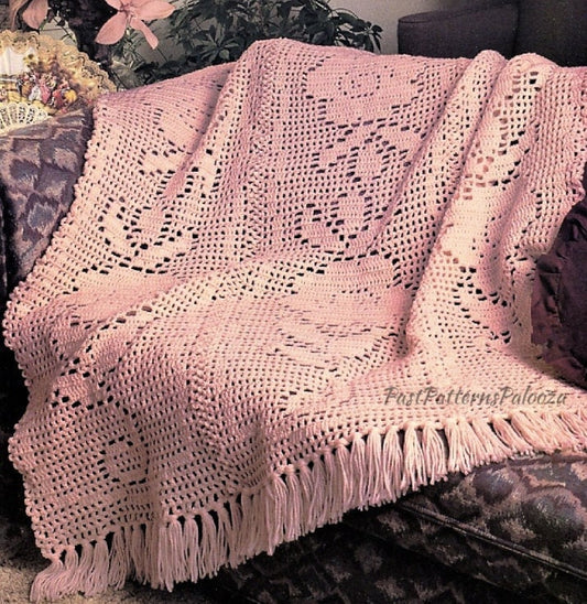 Vintage Filet Crochet Pattern Pretty Victorian Roses Afghan Instant Digital Download Blanket 48x57 10 Ply