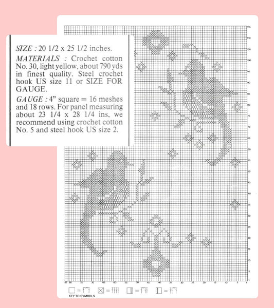 Vintage Filet Crochet Pattern Lace Songbird Birds Small Window Valance Panel Cafe Curtain PDF Instant Digital Download Birdie Motif Design