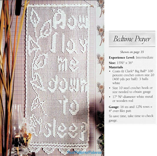 Vintage Filet Crochet Pattern Now I Lay Me Down to Sleep Bedtime Prayer Picture Panel Wall Hanging PDF Instant Digital Download 15x36"
