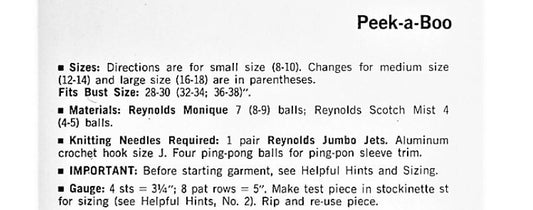 Vintage Knitting Pattern Womens Peek A Boo Mini Dress Retro 1968 Chunky Knit PDF Instant Digital Download Boho Big Needle Knits 12 14 Ply