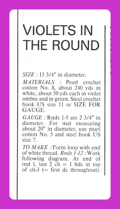 Vintage Thread Crochet Pattern 14" Violets In The Snow Large Doily PDF Instant Digital Download Pretty Flower Wheel Table Mat