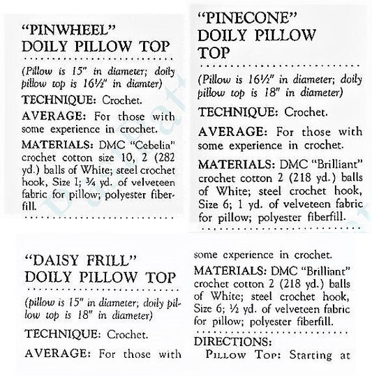 Vintage Thread Crochet Pattern 16" Round Doily Pillow Top Covers PDF Instant Digital Download 3 Lacy Designs Pinwheel Pinecone Daisy Flower