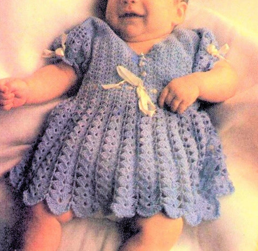 Vintage Thread Crochet Pattern Baby Girl Fancy Occasion Dress Ribbons & Shell Stitch PDF Instant Digital Download 1970s