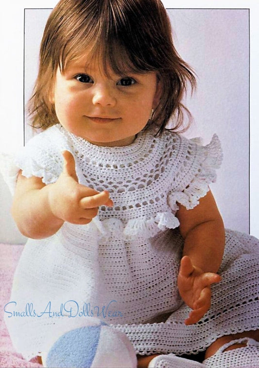 Vintage Thread Crochet Pattern Baby Girl Ruffled Yoke Dress and Bootie Shoes Set Lacy Openwork PDF Instant Digital Download 6m - 12m No 5.