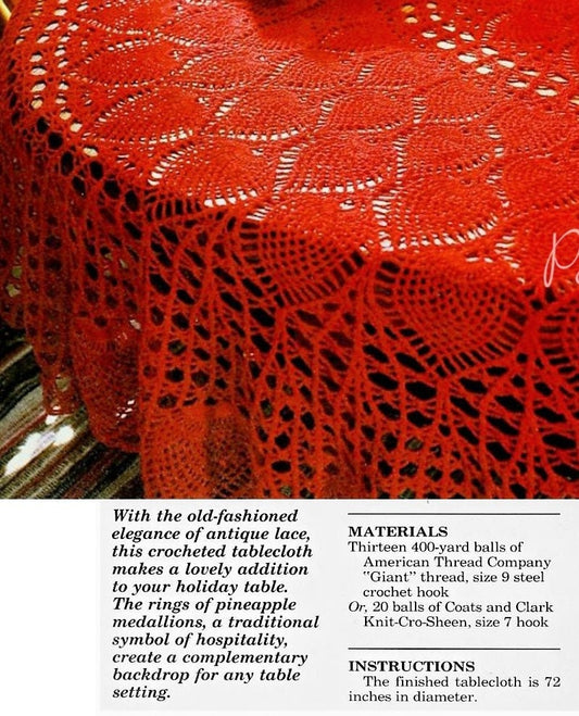 Vintage Thread Crochet Pattern Antique Lace Pineapple Medallions Tablecloth PDF Instant Digital Download Round Christmas Table Cloth 72"